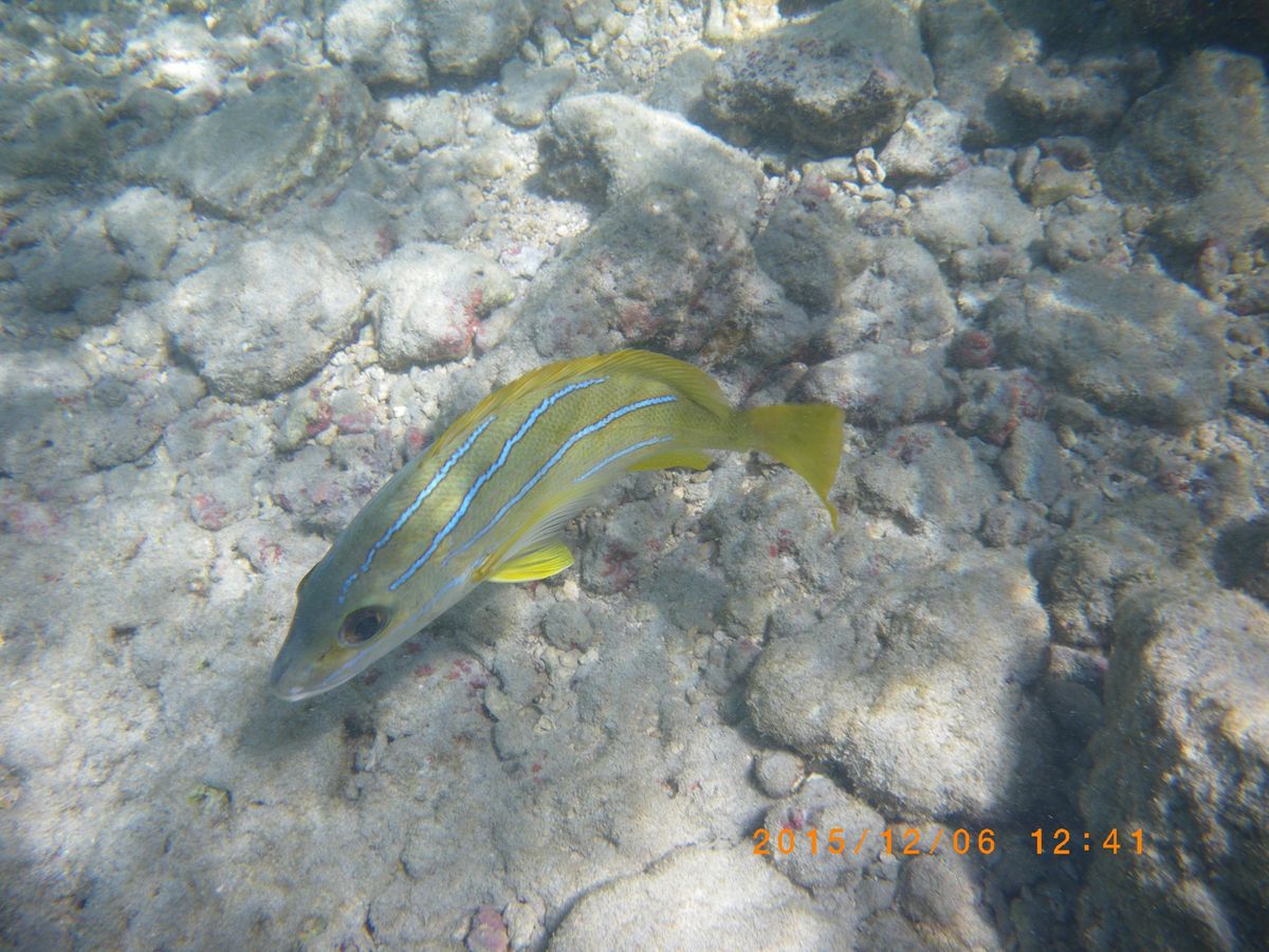 当日は雨季の季節で雨が降ってましたが、シュノーケリングをすると海の中で魚をたくさん見れました。
