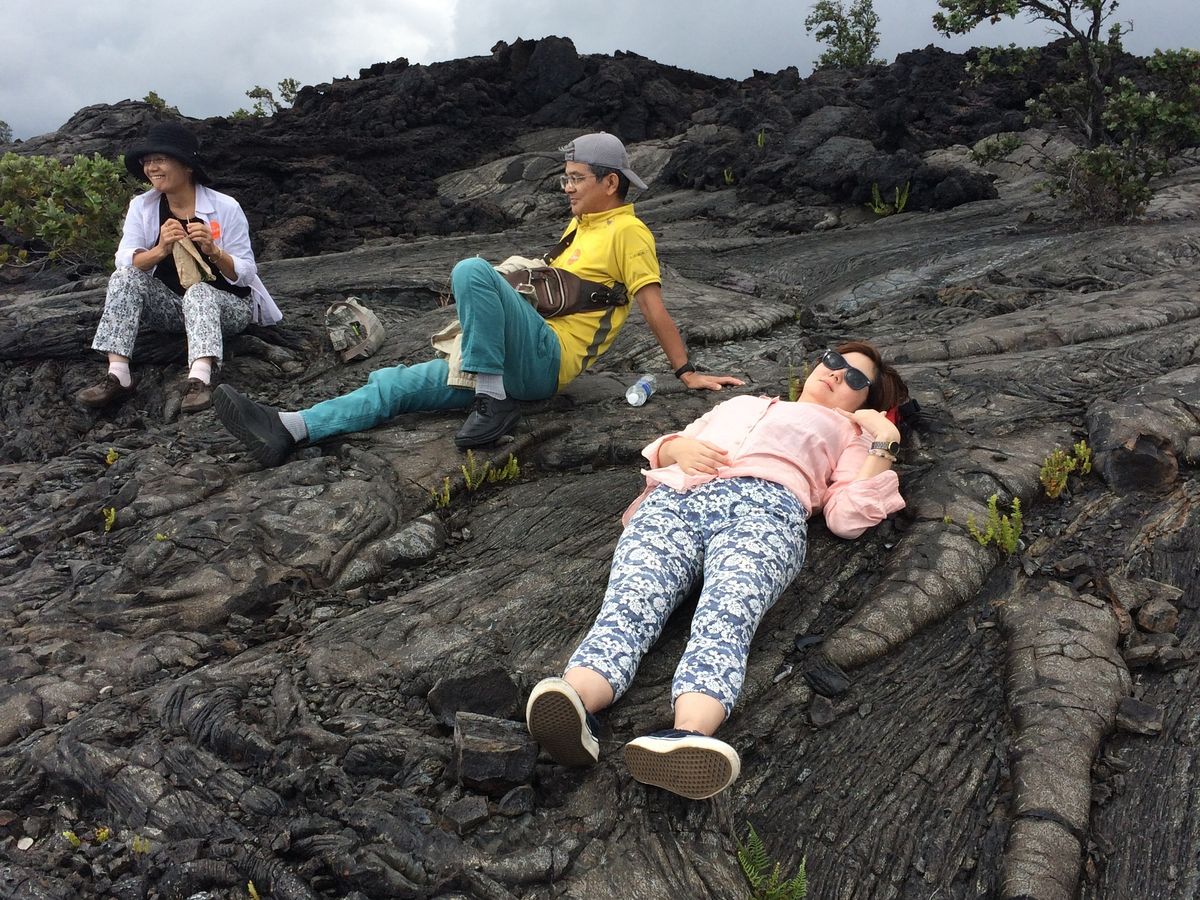 ハワイ島といえばまず火山。溶岩石の上を歩いたり、トンネルをくぐったりできました。