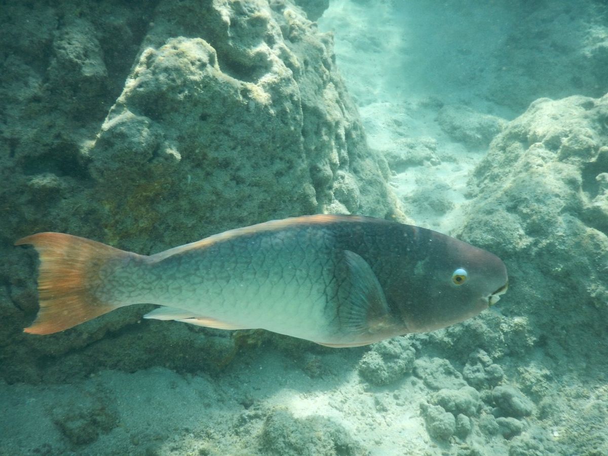 シュノーケリングの頃から小雨が降り出し、海面も薄暗くなってしまったのは残念でした。