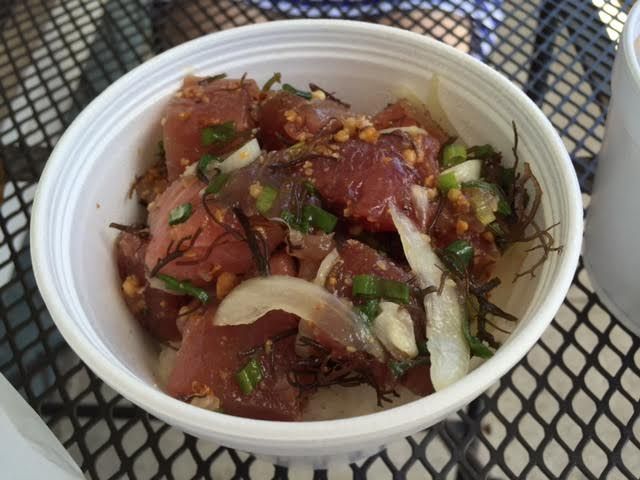 一番初めに立ち寄るカイルアはたっぷり3時間も滞在できるので、私たちは自転車を借りてカイルアビーチに行きました。とてもきれいでした。戻ってきてランチ!「ヒバチ」のポキボールが美味しかった。