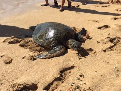 ハワイではウミガメなどの絶滅危惧動物の保護に力を入れていて、2メートル以上近づくと罰金らしい。