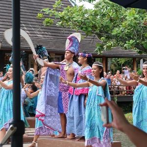 小さいお子様連れの家族、カップル、全ての方が楽しめる体験型ルアウで、私達家族もめいいっぱい楽しませていただきました!ショーが始まる前に火起こしやバナナリーフを使用したヘッドバンド作り体験等があり、観客を飽きさせないような構成になっています。記念日で来ている観客をステージでお祝いしたり、観客とのダンス、また、何よりもチーフの話がとても面白く、途中何度もお腹の底から笑わせていただきました!食事やマイタイカクテルもとても美味しかったです。