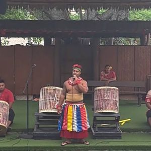 非常にプロフェッショナルで高品質なショーで、ココナッツの葉を使って瞬時にバスケットを作るなど、伝統文化の本物の要素が詰まっていました。特にホストが素晴らしく、火を使いながら本物のコメディアンとして、恋人や子供たちを楽しくからかう姿が印象的でした。その夜のホスト、私たちのチーフに真の敬意を表します!