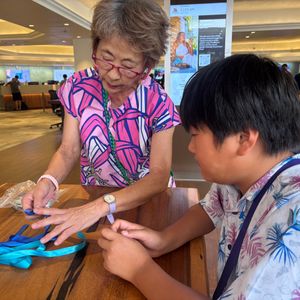 11歳甥っ子が夏休みの課題作成の為に参加させていただきました。初体験で不安がありましたが、ゆっくり丁寧に教えていただき、30分もかからず素敵なリボンレイが出来上がりました。