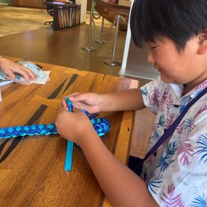 オハナパラダイスプランに夫婦と11才の娘の三人で参加しました。娘には難しいかな?プラン変えようかなと少し迷いましたが、事前のメールで大丈夫ですと言っていただけて、結果このプランで大正解。先生の手も借りながらもくもくと作業を進め、すごく素敵なリボンレイが完成しました。そのレイをつけて、ディナークルーズに参加。クルーズでもたくさんの方にレイを褒めていただき、娘も本当に嬉しそうでした。日本に帰ってからは、作成したレイは娘のお気に入りのぬいぐるみたちの首にかけて、素敵なハワイアンゾーンが我が家の一角にできあがり、帰国後もハワイの思い出を楽しませてくれています