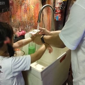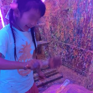 ブラックライトで照らさせた部屋で音楽を聞きながら蛍光インクを飛ばし部屋を汚す、汚れる事を気にせず思いっきり楽しめる。普段味わう事が出来ない貴重な体験でした。キャンバスのお土産もあり良かったです。