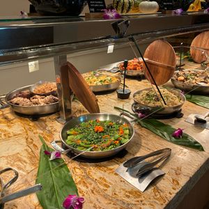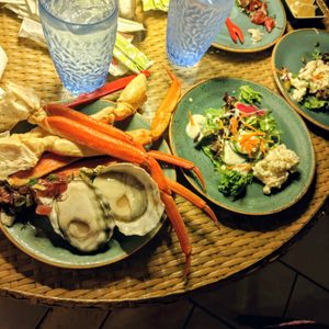 事前にYouTubeで観ていた物と提供されていた品が一部変わっていたのは季節季節で致し方ないと思いましたが、品物によっては素材が必ずしも上クラスでない物もあって残念でした。ただハワイの物価高騰を考慮すれば,これだけの種類が楽しめるのは料金的にはリーズナブルブルと思います。蟹や肉類はとても美味しく頂き,全種類を制覇するのはとても無理でした、満足のいく夕食でした。