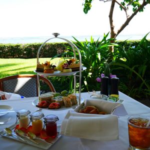 海やダイアモンドヘッドを見ながらアフタヌーンティー。