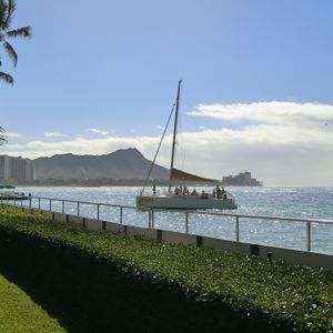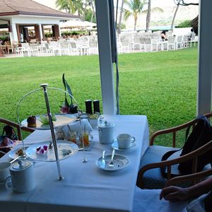 到着日に利用しましたが、ワイキキビーチを見渡しながら優雅にアフタヌーンティーを楽しむことができ、とても満足しました。料理は美味しいのですが、やや量が多いので余った分はテイクアウトしました。スタッフの方も親切で、記念写真を撮ってくださいました。
