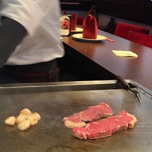 本格的な鉄板焼きのステーキと