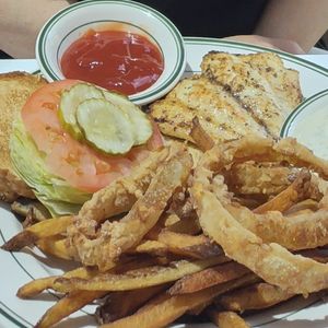 ポテトとオニオンリングが油臭かったのが残念です。