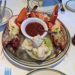 まず、前菜のロブスターとエビも見た目が豪華で 感動して、メインのポーターハウスステーキは焼き具合をミディアムとレアを頼みました。