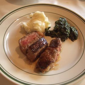 一度アメリカらしいステーキハウスに行ってみたくて予約しました。脂は多くなく軟らかで美味しいステーキでした。前菜の盛り合わせはハワイらしく(?)シーフードが結構ボリュームたっぷりで私は良かったです。肉の付け合わせのポテトとほうれん草のクリーム煮は味付けは好きなのですが、量が多く日本人向けではないかも。立地が良いせいか、テーブルは狭く感じました。