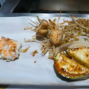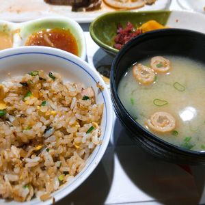 最終日の夜に「US黒毛牛サーロインセット」を予約しました。サラダから始まりエビのソテー、焼き野菜は(もやし・玉葱・マッシュルーム・ズッキーニ)量も程よくありました。この値段のディナーでサーロインステーキ230gは本当かなと少し疑っていましたが出されたステーキはとても大きかったです。ステーキは鉄板で好みの焼き具合で焼いてくれます。食べやすく切ってくれるので食べやすかったです。ハワイ産の塩をお皿の横に入れてくれるのですがステーキとの相性が良くとても美味しかったです。タレも二種類用意してくれてどちらも美味しかったです。最後はライス、お味噌汁、おつけものですがこのライス、前半でガーリックライスかと聞かれます。日本ではよく追加料金がかかりますがただ聞かれただけだったのでガーリックライスOKと注文しました。帰りに追加で10ドルちょっと払いました。ガーリックライス代です。とても美味しかったし満足でしたので追加がかかってもガーリックライスにしましたが説明があっても良かったかなと思います。コース料理なのに本当にリーズナブルな料金でボリュームがありすごく美味しかったので大満足です。人気店なのでまた予約して是非行きたいと思います。