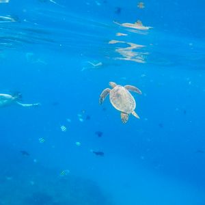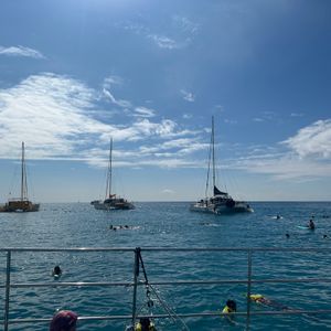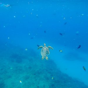 野生のウメガメ、熱帯魚たちを見学できます。ウメガメは息継ぎで上がってくるので、目の前で見ることができます。ウメガメは100%見れるとのこと。船の上からイルカとクジラは30%で見ることができるそう。天候によって、海の濁り具合が変わってくるので、クリアに見れない時があります。ウメガメがいるスポットがあり、他のツアーの観光客も来るので、人がかなり多くなります。泳ぎが苦手でもフォローしてくれるので大丈夫です。メールの内容ではかなり分かりにくいですが、同意書へのWEBサインが必要なので、事前に対応しておきましょう。写真は撮ってくれますが、70ドルと高額なので、海水の中で自分たちで撮影できるようにしたほうが良いです。