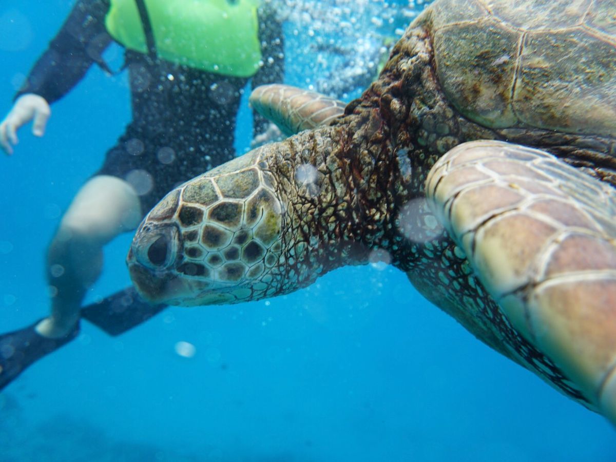 ウミガメに触れてはいけないのですが、近くまで寄ってきてくれるので手を引っ込めてしまうくらいでした笑