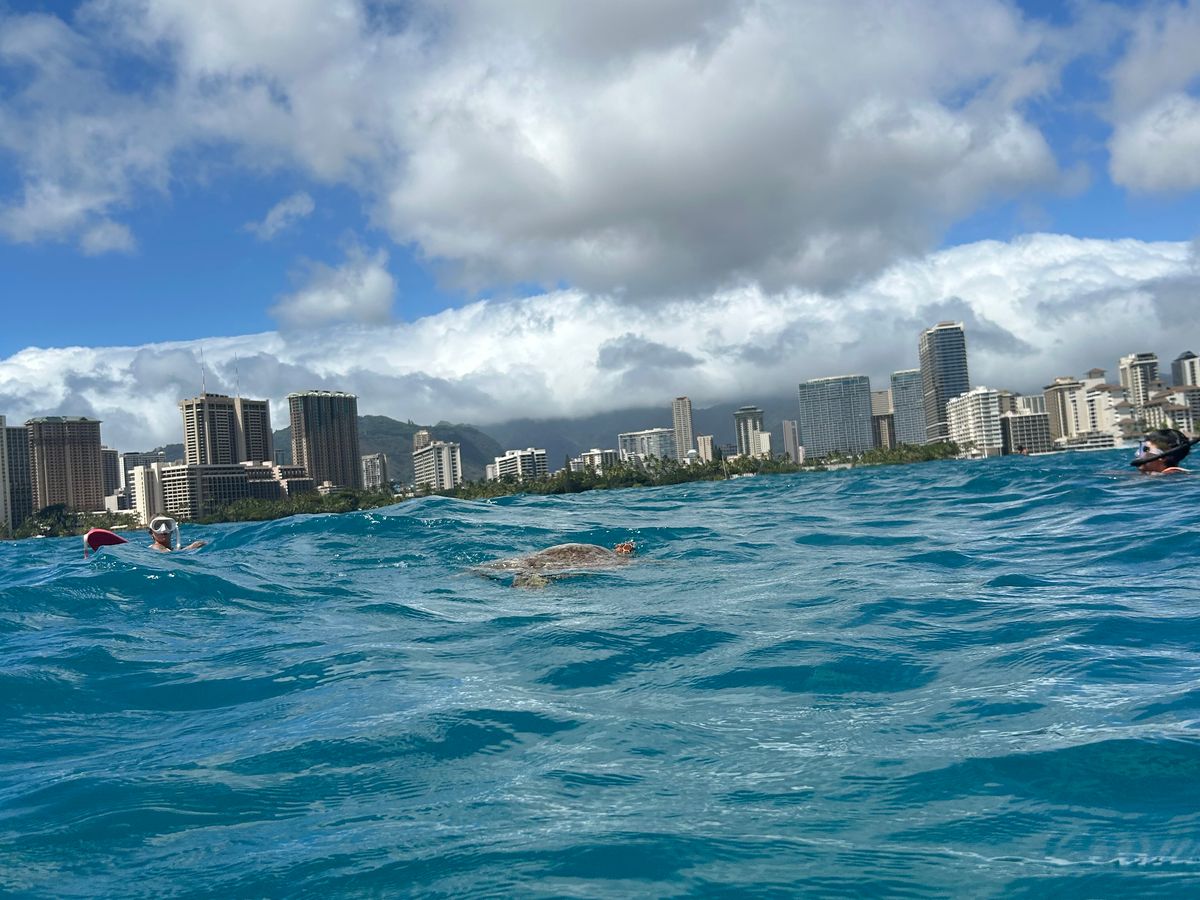 初めてのシュノーケリングで少し緊張しましたが、スタッフの皆さんがとても丁寧に教えてくださり、安心して楽しむことができました。シュノーケリングの後はダイヤモンドヘッドの近くにも連れて行っていただき、素敵な写真がたくさん撮れました!