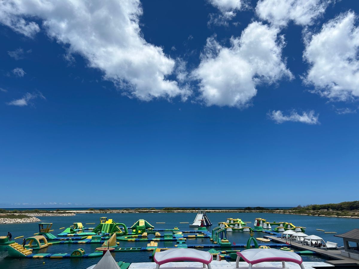 以前沖縄の万座ビーチで水上アスレチックをやりましたが、WaiKaiの方がアスレチックが広く、またスリリングなものが多かったです。特に巨大滑り台は大人気でした。
