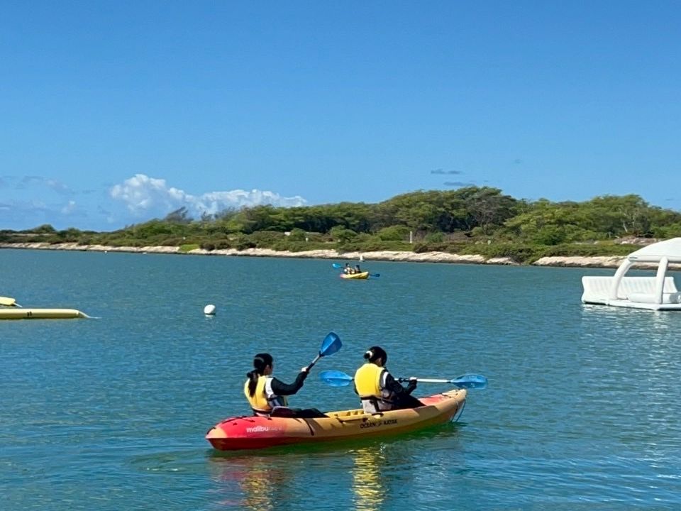 中学生の娘達を連れて初めて行く場所でした。現地のガイドの方は日本の方で最初から最後まで親切丁寧に説明され、ほとんど不安もなかったです。時間前にカヤックなども案内してくれて空いてるうちに体験できました。水上アスレチックも広くて、初老の私でもカメラマンしながら楽しみました。サーフィン体験プランでほんとに乗れる??と不安でしたが、インストラクターの方と言葉は通じないけど雰囲気も優しくて手をとってサポートしてくださっていたので、最後には1人で波乗りできるようになってました!!ランチもボリュームがあり食べきれないくらいあって美味しかったです。