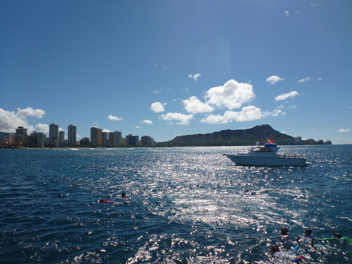 毎年ハワイに行っていながら、初のワイキキ沖セーリング。当日の参加者は10人ほどで日本人は私たちだけ。酔うような揺れもなく快適。沖から見るワイキキの眺めは格別でした。シュノーケルポイントにはカメさんも結構いて楽しめます。ただ・・・ライフジャケット等はなく、英語で「ヌードル」という浮く棒のみ。シュノーケルは無料で貸してくれます。なので、不安な方は持参した方がよいかと。迷ったもう1つのカタマランツアーにはライフジャケットがありました(同じポイントでやっていたのでわかりました)。飲み物、スナックは有料なのでお水等持参がおすすめ。スタッフは英語のみですが感じよく親切。ワイキキビーチ発なので気軽に参加できるのでおすすめです。