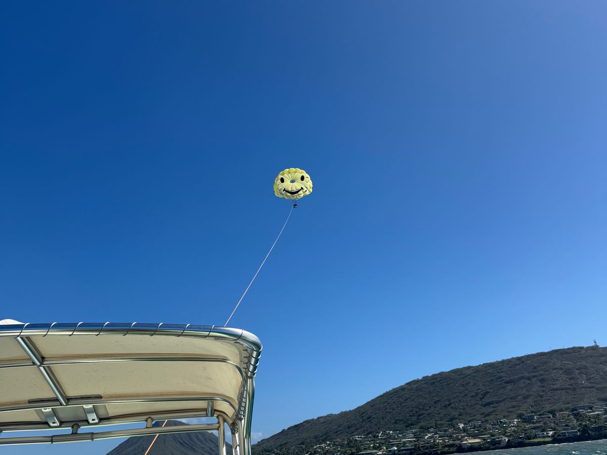 今回のハワイ旅行で1番のメインイベントのパラセイリング!障がいを抱えた長男でしたが、楽しく空中散歩できました。