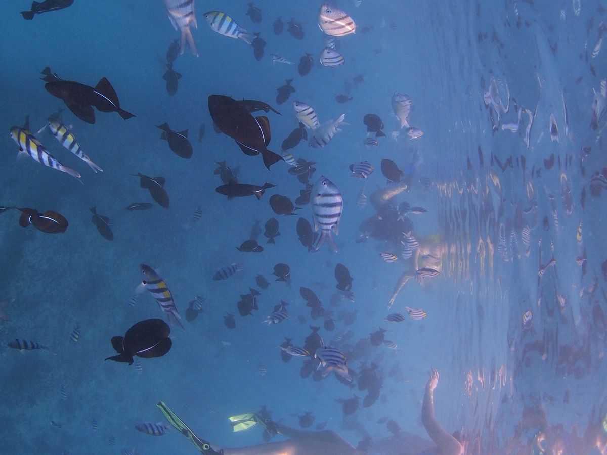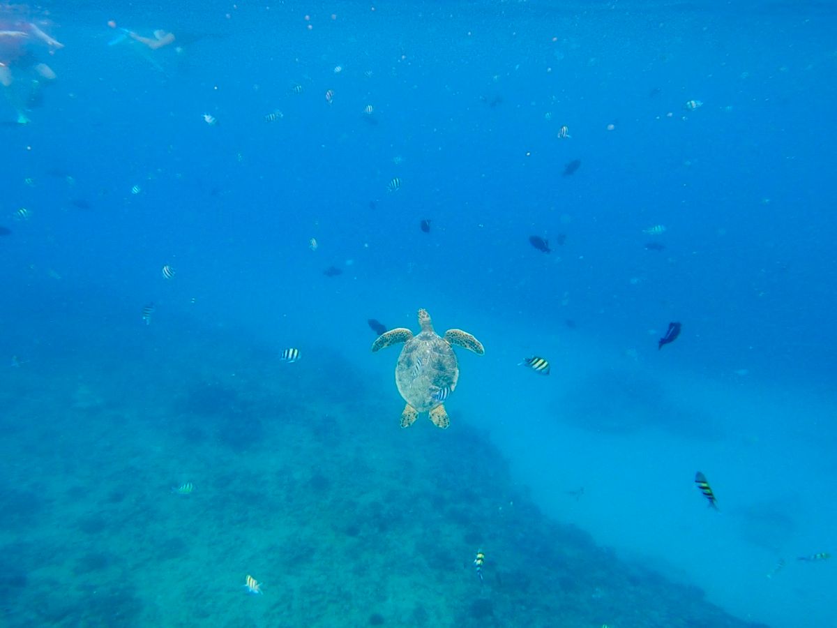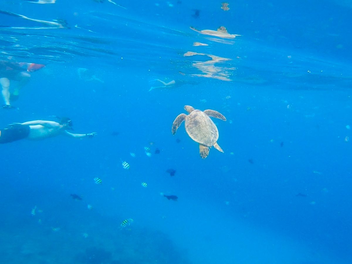 野生のウメガメ、熱帯魚たちを見学できます。ウメガメは息継ぎで上がってくるので、目の前で見ることができます。ウメガメは100%見れるとのこと。船の上からイルカとクジラは30%で見ることができるそう。天候によって、海の濁り具合が変わってくるので、クリアに見れない時があります。ウメガメがいるスポットがあり、他のツアーの観光客も来るので、人がかなり多くなります。泳ぎが苦手でもフォローしてくれるので大丈夫です。メールの内容ではかなり分かりにくいですが、同意書へのWEBサインが必要なので、事前に対応しておきましょう。写真は撮ってくれますが、70ドルと高額なので、海水の中で自分たちで撮影できるようにしたほうが良いです。