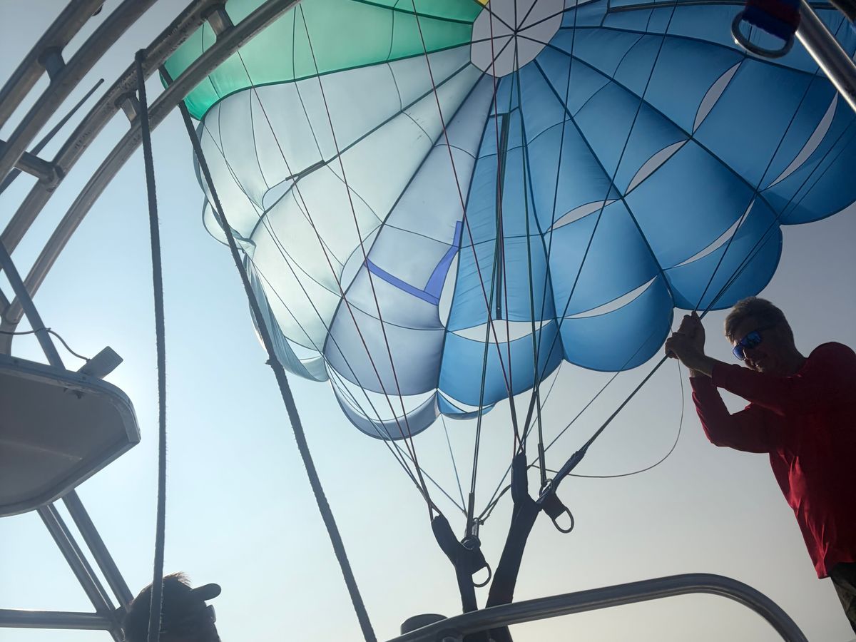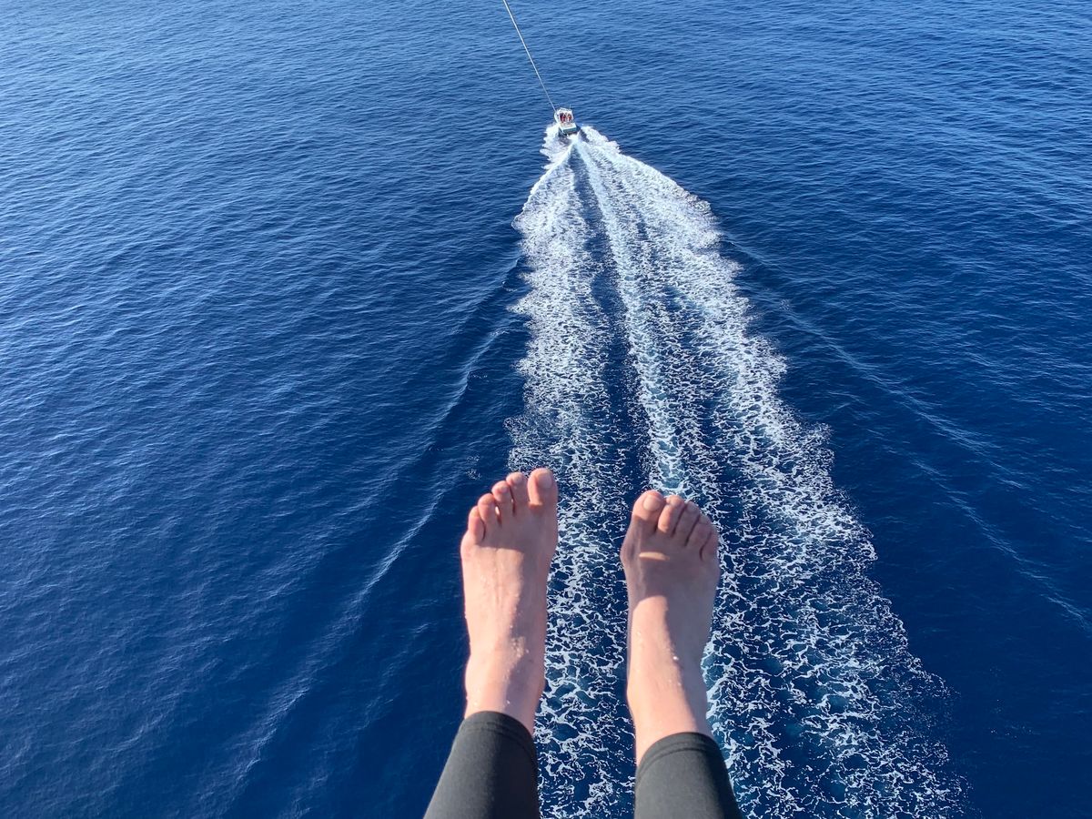 順番に道具を着用して7分ほどのパラセーリングがスタート。同乗した向かいのグループに写真を撮りましょうかと声をかけるとみんなで撮りあいっこする雰囲気に😙全員日本人だったからかな?笑