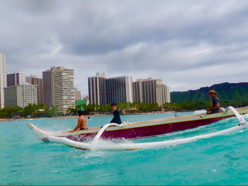 そして、体験の方は一生思い出に残るくらいとてもいい体験ができました。浜から少し沖の方へ出るまでに漕いでまた浜まで戻るのですが、それがまるでディズニー映画に出てたモアナのようなシーンを思い浮かべました笑