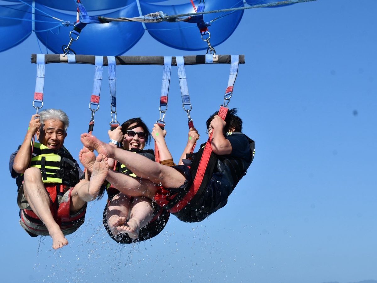 初めてなので怖くて緊張しまた。他のお客様さん達が声をかけてくれたり盛り上げてくれたので少しずつ慣れてきて周りの景色を見れました(やはり怖かったですが…)海の風はここち良く最高でした。