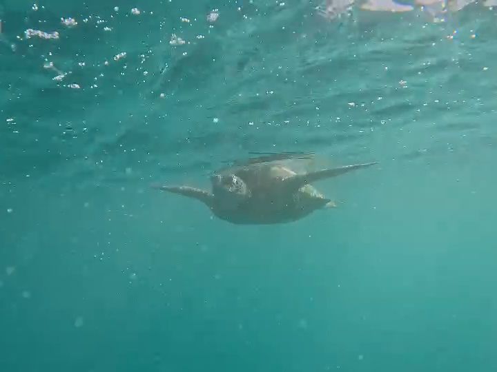 マキさんのサーフボードに着いて行ったら、本当にウミガメに出会えました。海底で寝ている姿や水面に上がってくる様子、顔をぷかっと覗かせるところなど可愛いところが目の前で見られて感動しました。私と家族はみな泳げないので不安でしたが、想像以上の体験をさせていただき大満足です!!