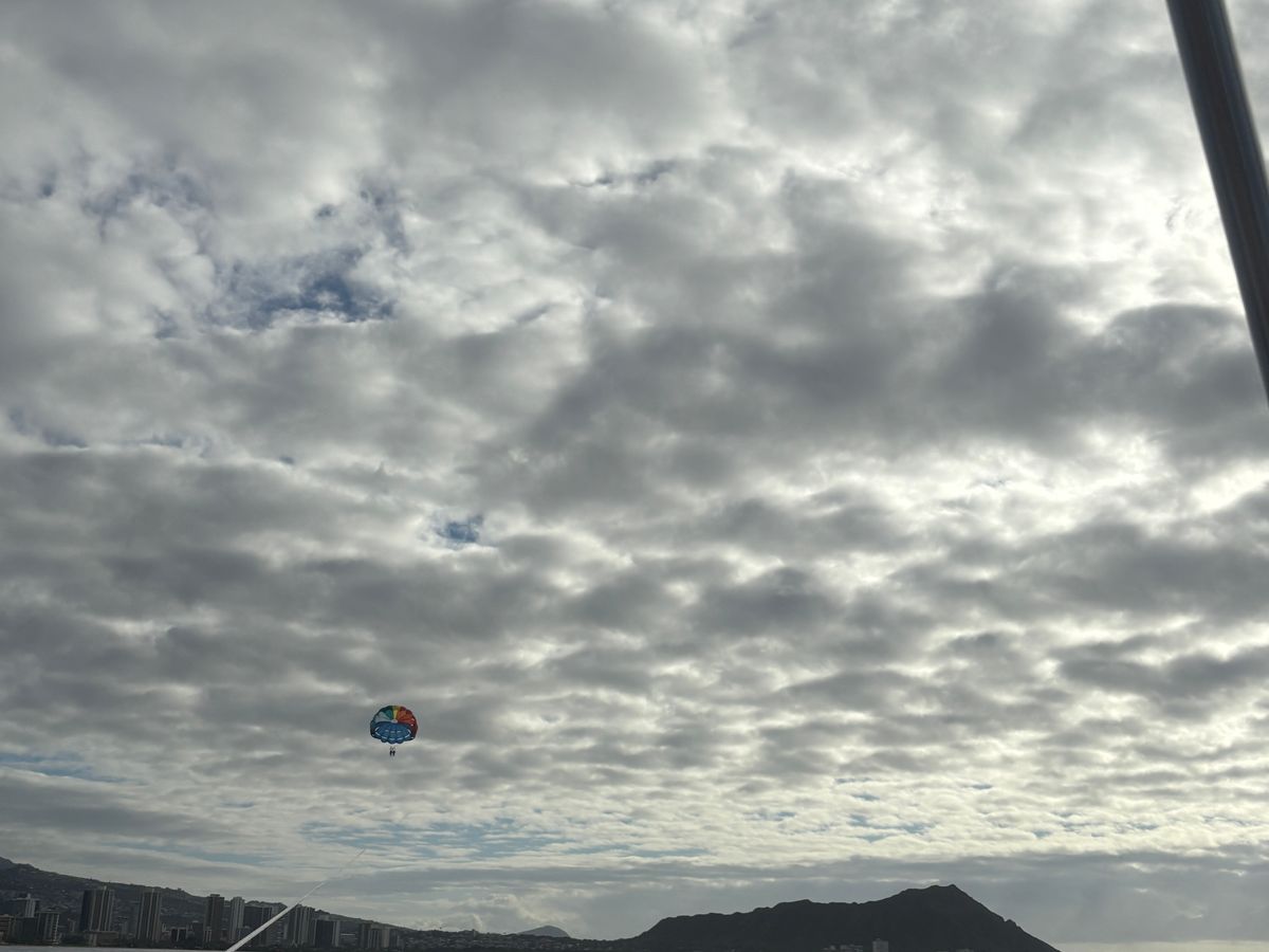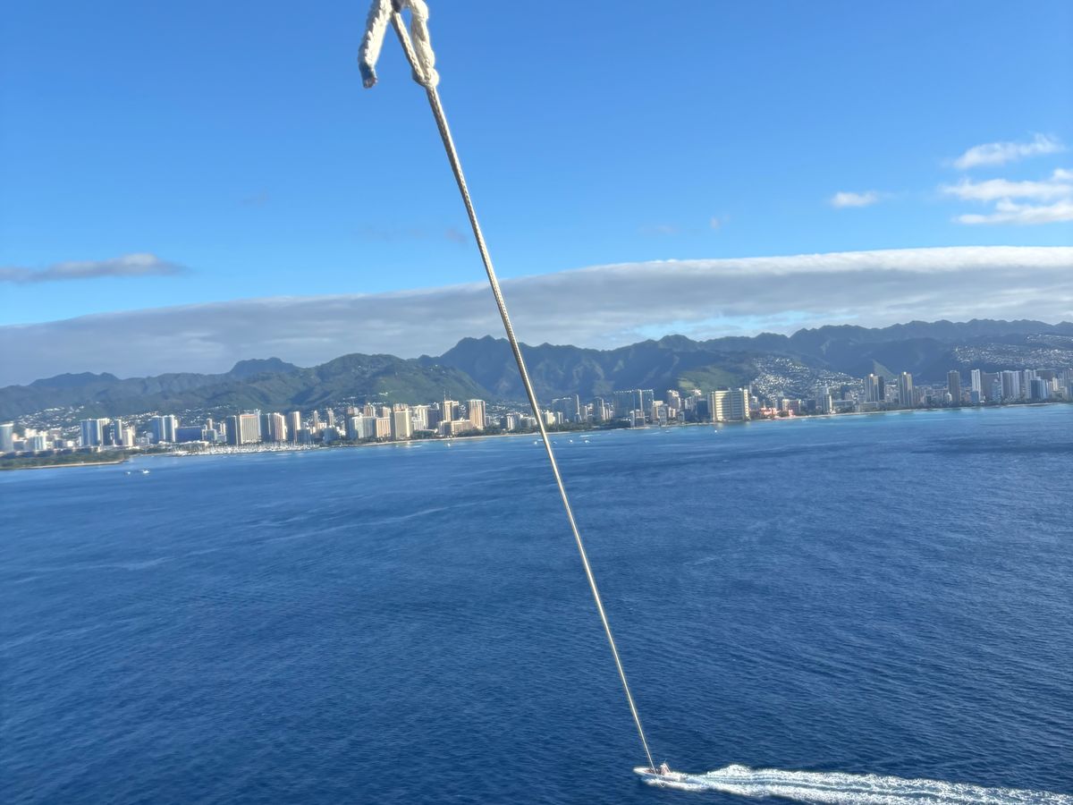 ダイヤモンドヘッド、ビーチ、ヒルトンビレッジを一望できる空中散歩ができました!パラセーリングで上がってる時は怖くないですが、船がスピード出す都合上、船に乗ってる時は浮遊感があり怖い時があります。40ドル払えば写真を100枚程度撮ってくれます。