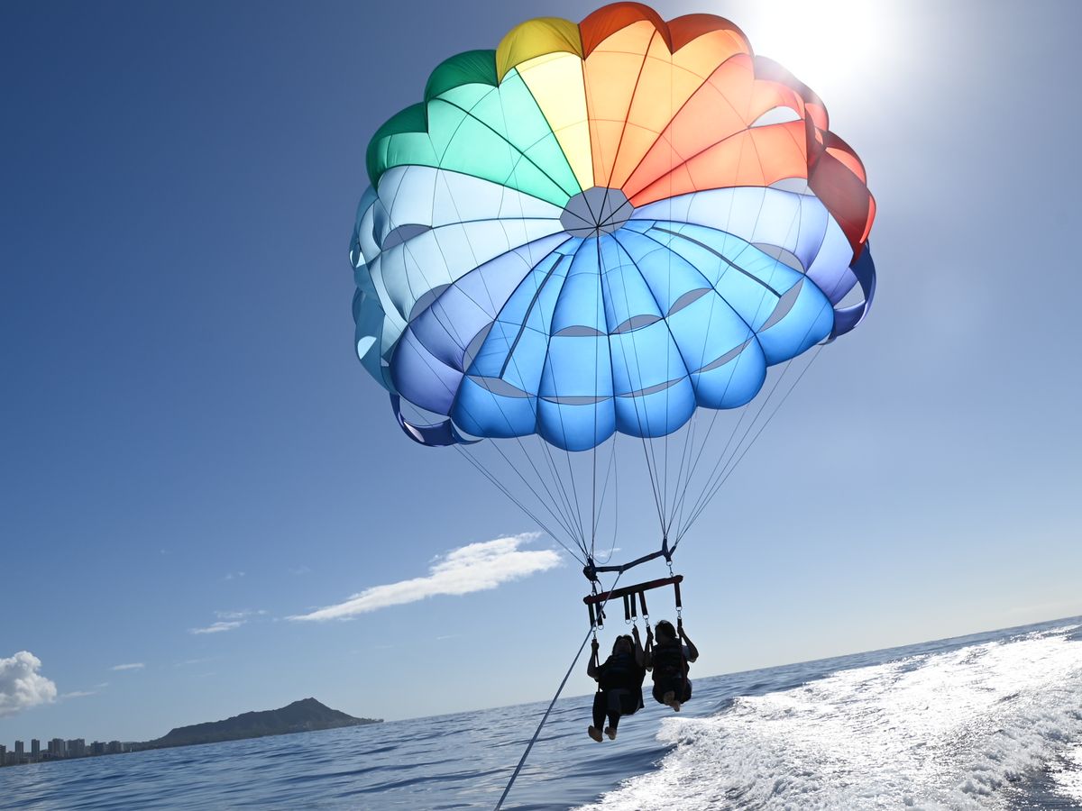 新婚旅行でハワイに訪れ、初めてのパラセーリングに挑戦してみました。私は浮遊感が苦手なので、飛び始めるまで緊張してましたが、いざ上空に行くととーーーっても気持ちがよく景色も綺麗で最高でした。インストラクターの現地の方もとても陽気で明るく、同じボートに乗った5組全員日本人でしたが、みんながみんな楽しくインストラクターの方とコミュニケーションを取れていました。