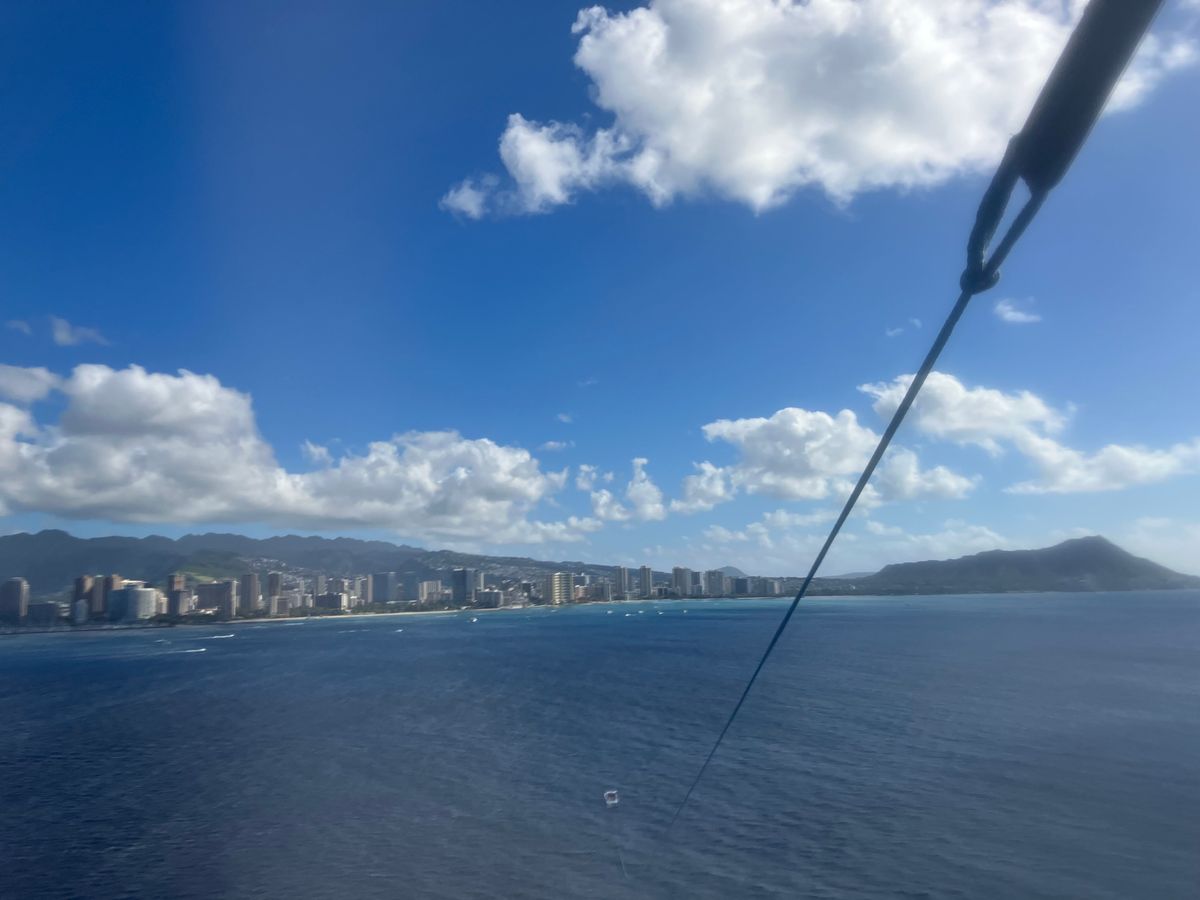 結果とても楽しかったです!ハワイならではの貴重な経験ですね。海側から見るワイキキやダイヤモンドヘッド、空から見渡す景色は最高でした。