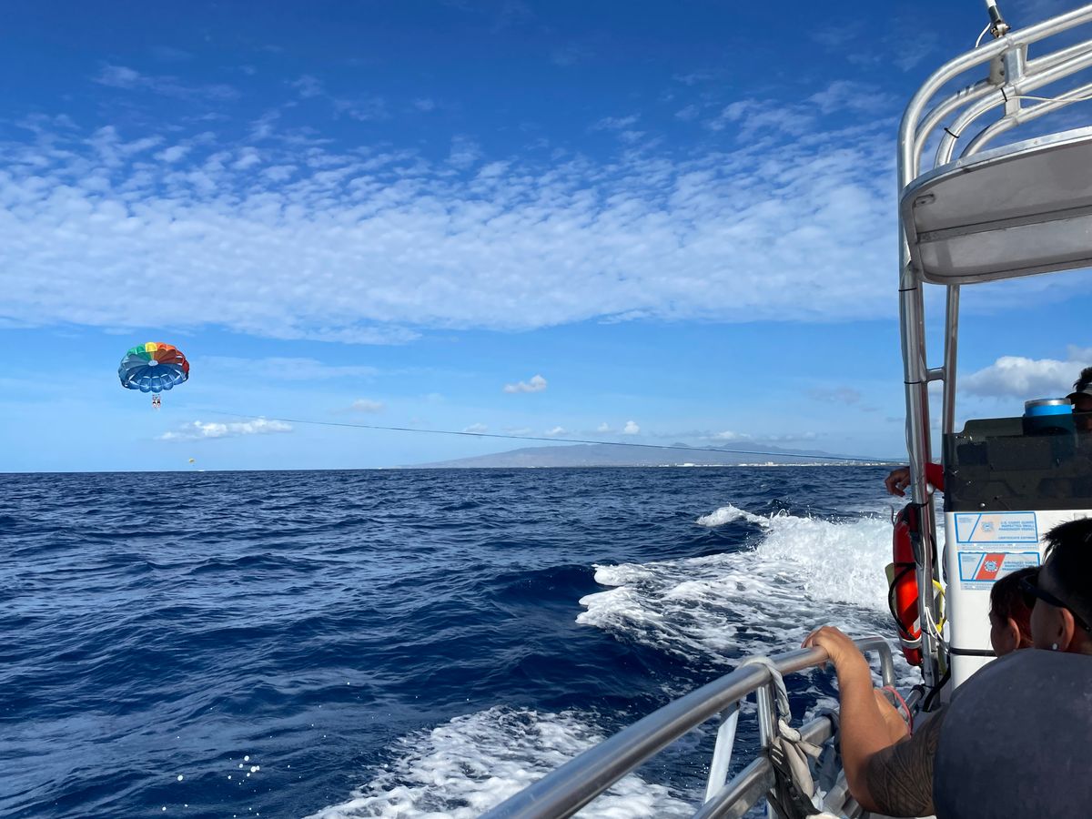 パラセーリング家族4人で体験しました。ダイアモンドヘッドを見下ろす位の高さまで上がります。
