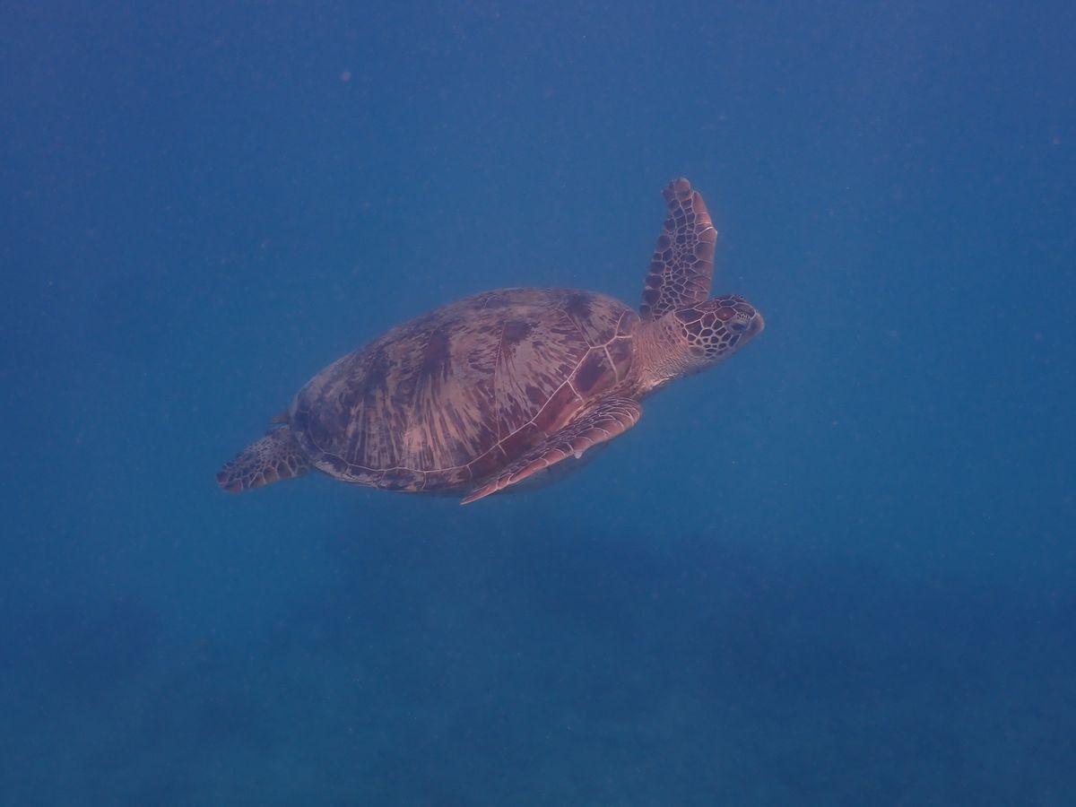 基本的にサンゴ礁があるポイントではないので、色とりどりの魚をたくさん見られるというわけではないですが、私も泳ぐウミガメは初めて見られて感動しました。