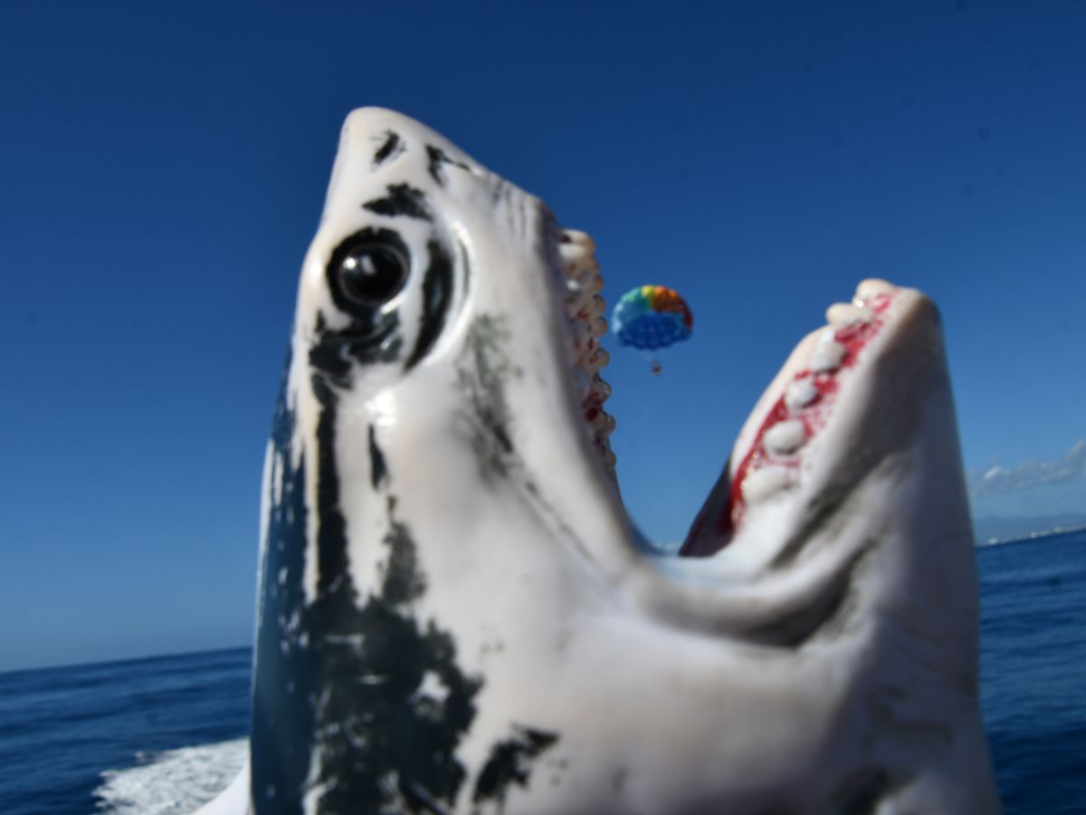 子供が「サメだ!」と叫んだので、海を覗くと、たくさんのサメがいます!