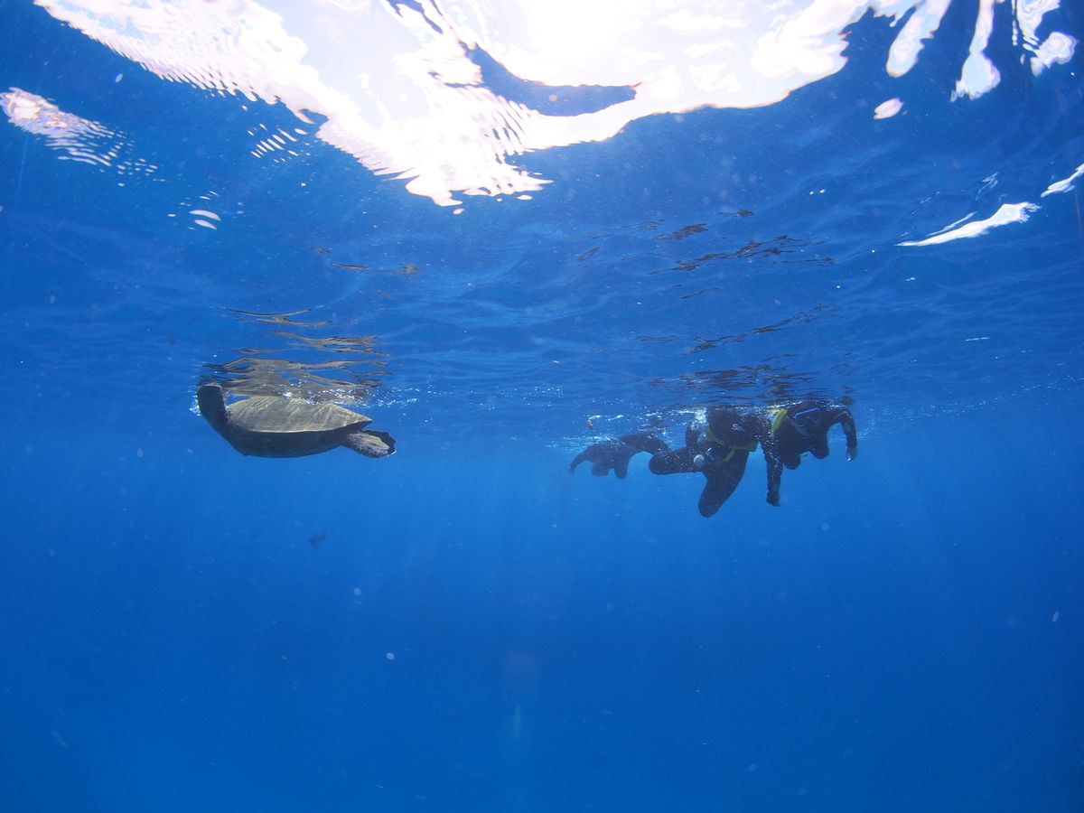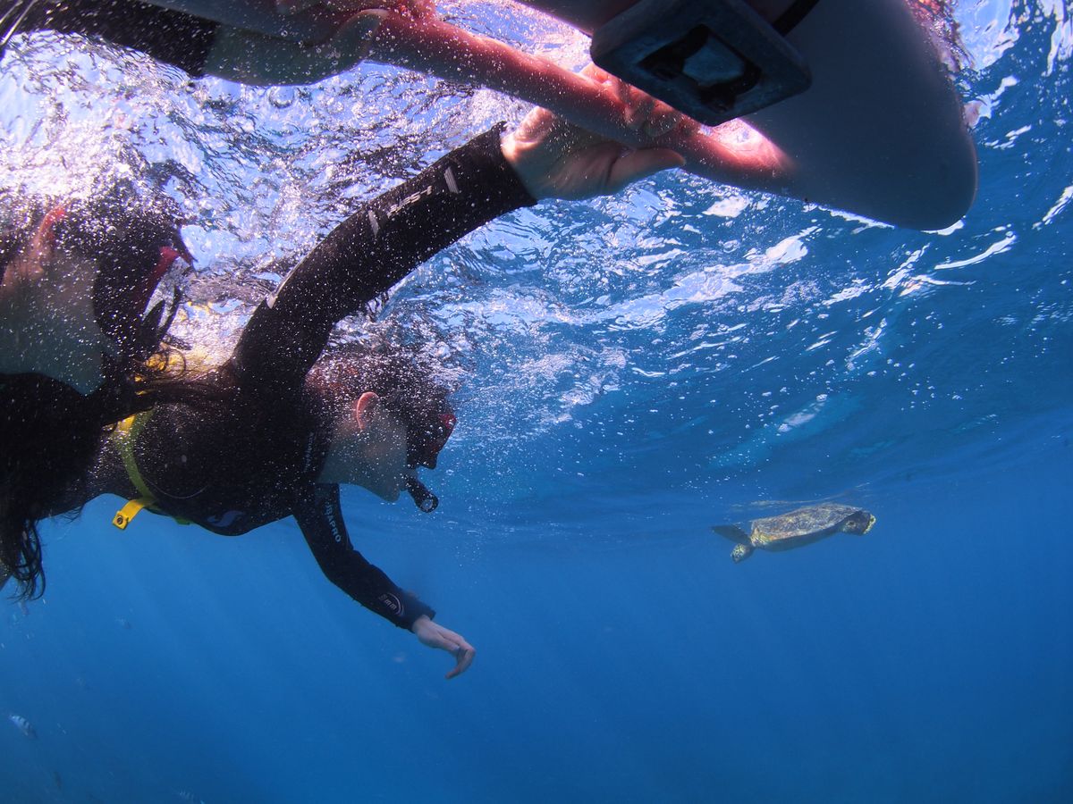 日本インストラクターのMakiさんに引っぱってもらいながら、たくさんのウミガメに会えました!