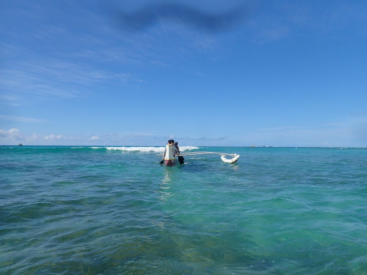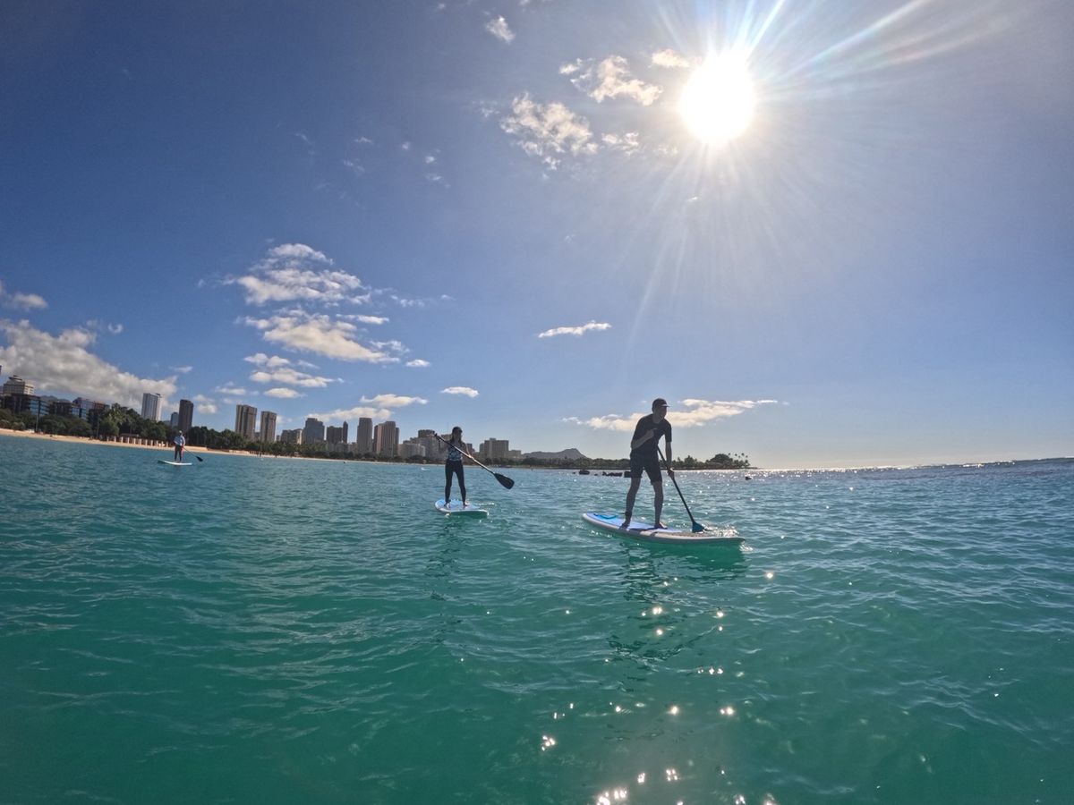 SUPルートは、観光客が少ないアラモアナビーチを颯爽と端から端まで(約1km)を往復しました。