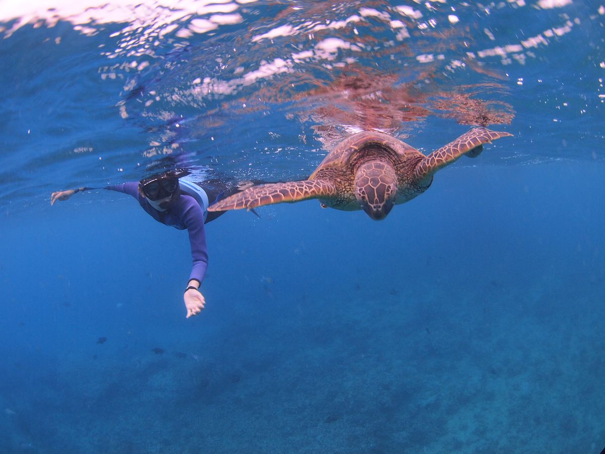 海に入るのも久しぶりで、緊張と不安でいっぱいでしたが、インストラクターさんの声掛けと優しい指導、亀と一緒に泳ぐことができたりと、時間を忘れる程夢中になりました!
