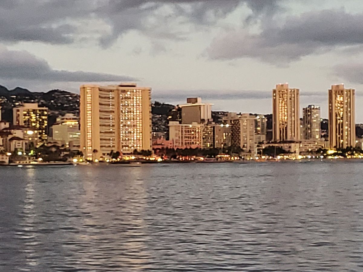 船からの夕景は綺麗でハワイに来た感は十分であった。