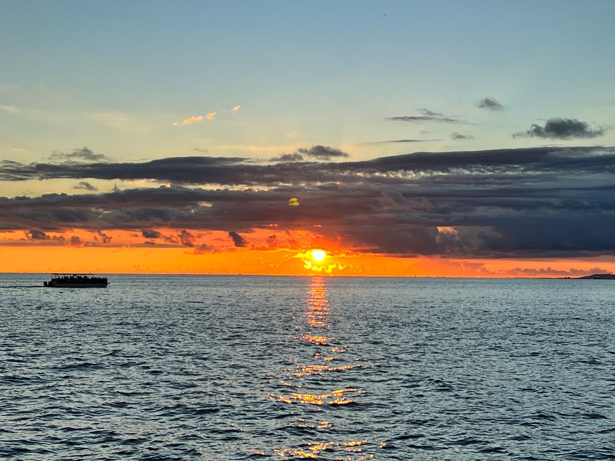 船からの夕陽とワイキキ夜景は絶景、良い思い出になりました。