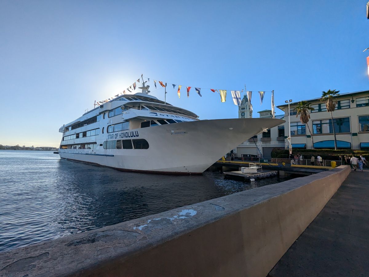 この度は私共のスターオブホノルル号デイナークルーズにお越し頂き誠に有難うございました。ノバファイブスターでの雰囲気、金曜日のヒルトンの花火そして、ジャズトリオもお楽しみ頂けました様で大変嬉しく思います。ハワイでの素敵な思い出作りのお手伝いができたことをスタッフ一同光栄に思っております。またのお越しをスタッフ一同お待ち申し上げております。
