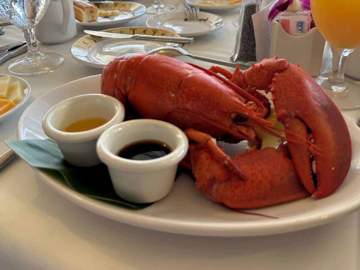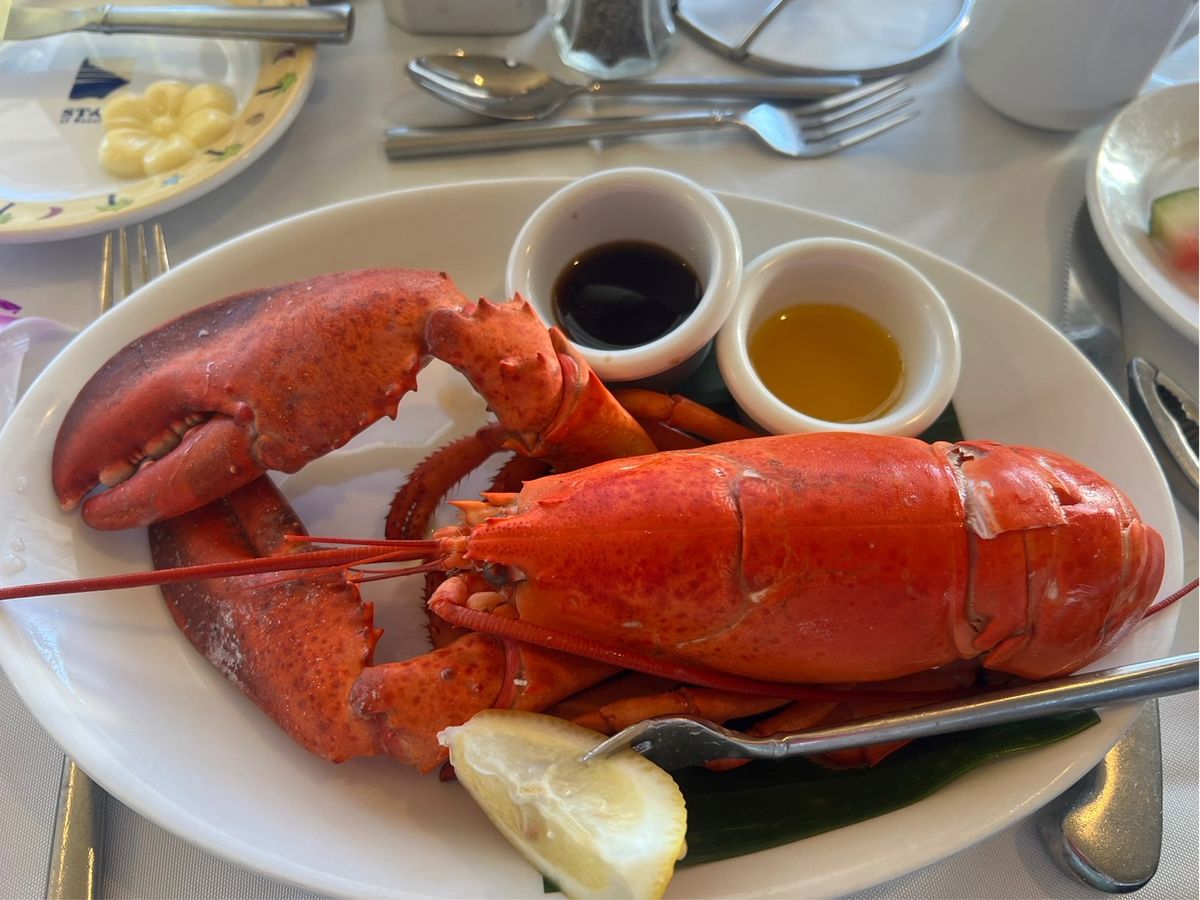 少し揺れましたが、サンセットを見ながらのお食事は、雰囲気がありました。中でもロブスターはインパクト大!