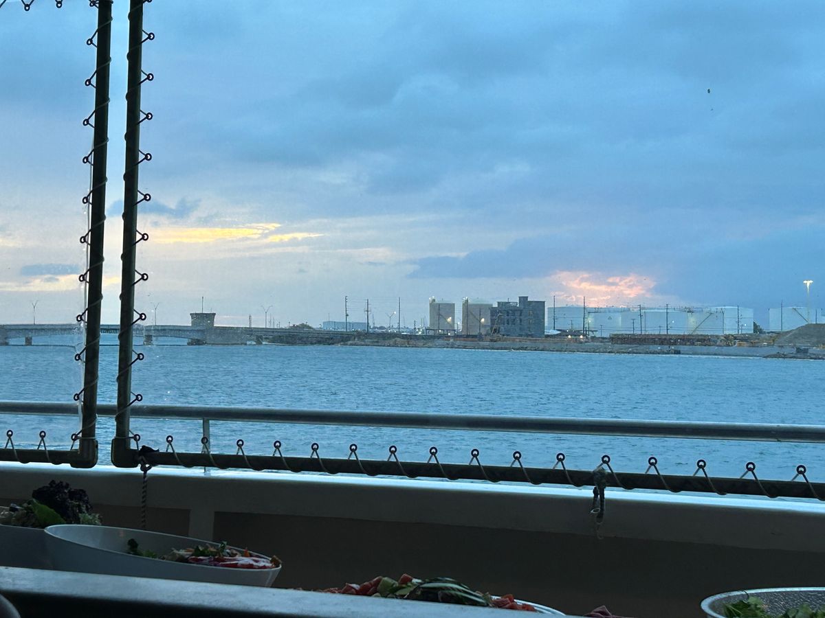 サンセット、夜景、金曜日の花火どれもとても綺麗でした。料理は美味しかったのですが少し量が足りなくて物足りない感じです。5スターの席はかなり寒いので上着は必須です。寒すぎて船外にちょくちょく暖をとりに行ってました。笑
