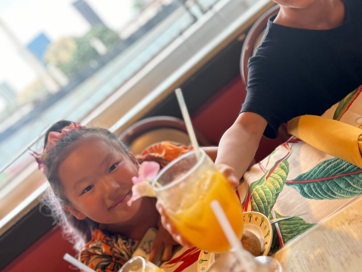 いつもコース料理で自分達と子供達の分のロブスターをカットして食べるのが大変なので、今回はビュッフェにしてみましたが、やはり美味しいのはロブスターコースで食べ物にこだわりがなければビュッフェでもサンセットはどちらでも見れるので。あとはコース料理の3階にはステージとダンサーが多め。ビュッフェの2階にも3名のダンサーさんが来てくれるので雰囲気は味わえます。去年も投稿しましたが、ドリンクが来るのは時間がかかるのでしっかり飲みたい方は早めの注文を!️が近づいていて風が強かったのでワイキキのビル群には近づけず、湾内を回ってました。金曜日の夜は花火が見れるのでトイレのないビーチで見るより快適!