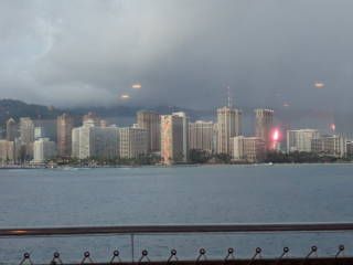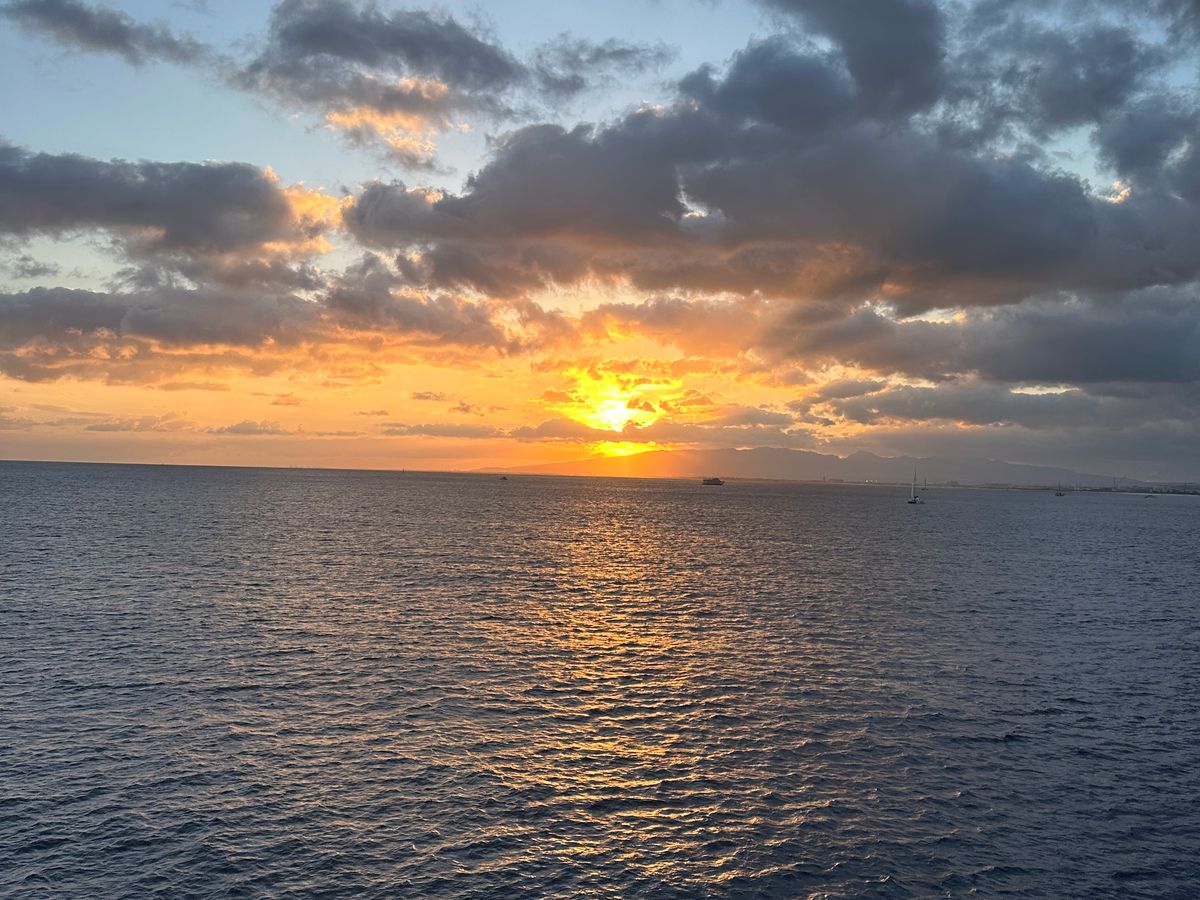 船は海を行ったり来たりして、ダイヤモンドヘッドも綺麗に見られたし、サンセットも素敵で、また20時の花火も見られて、言うことありませんでした。