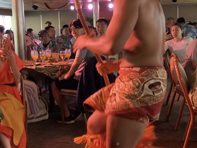 夕日や南海岸を海上から眺めながらのディナーは至福のひと時でした。ビュッフェ終了後のショーではハワイ気分を満喫でき、日本の曲のカバーなどもありすごく楽しめました。ビュッフェの料理もおいしく、日本語の通じるスタッフの方もいたのでいい体験ができました。