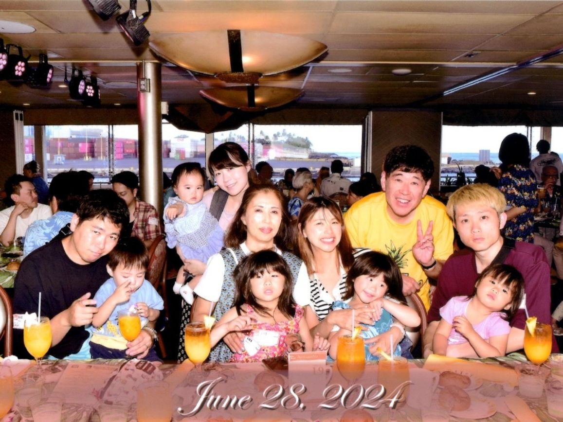 この度は私共のスターオブホノルル号デイナークルーズにお越し頂き誠に有難うございました。パシフィックスターでのブッフェ&ショーもお楽しみ頂けました様で大変嬉しく思います。御家族皆様で撮られたお写真も素敵ですね!ハワイでの素敵な思い出作りのお手伝いができたことをスタッフ一同光栄に思っております。またのお越しをスタッフ一同お待ち申し上げております。