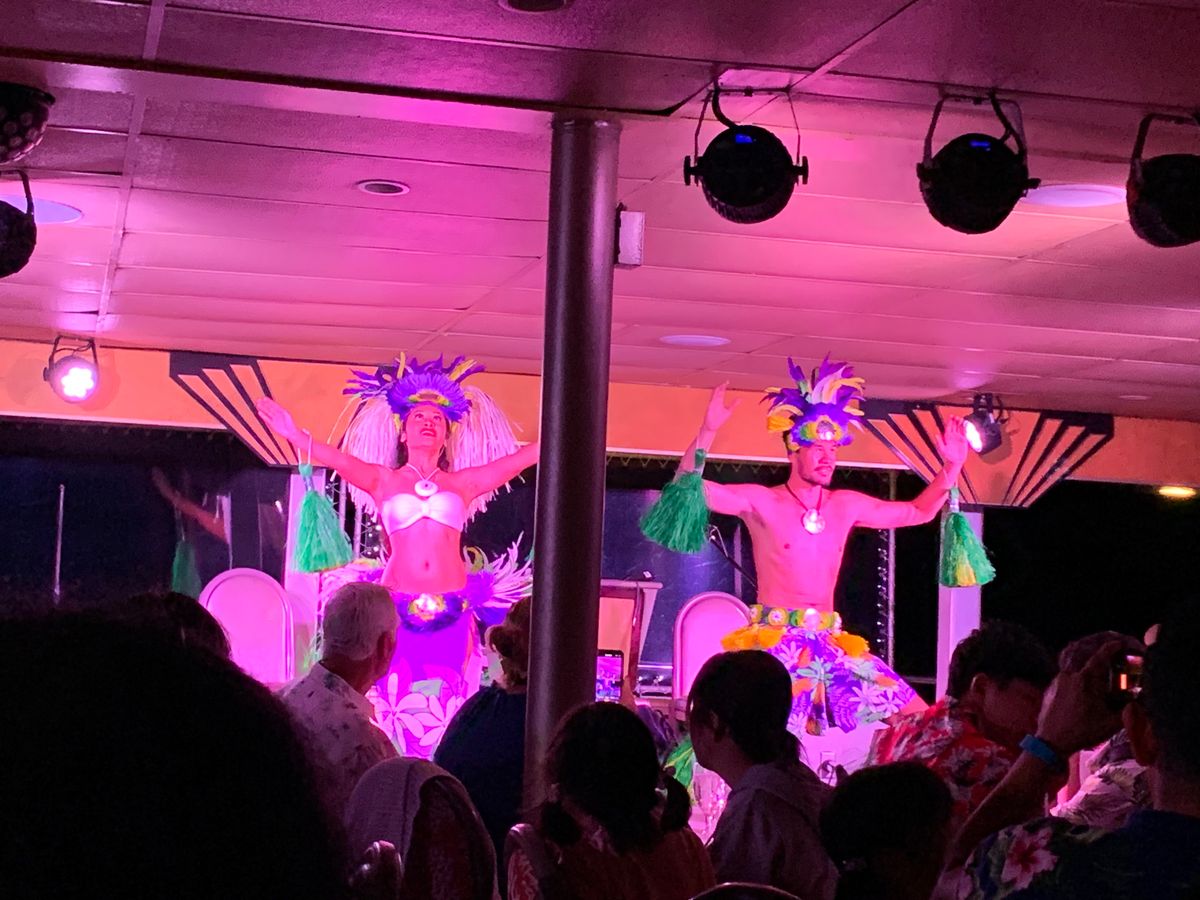 乗船前からフラとミュージックで歓迎があり、雰囲気を盛り上げます。