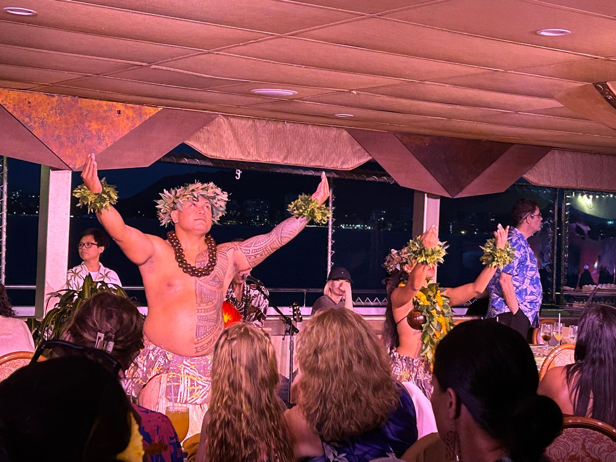 初めてのホノルルでのディナークルーズ、期待以上の素敵なひと時を過ごしました。船に乗り込むときからスタッフの暖かい笑顔。ストレスなしのサービス。そして最高のサンセット。食事が終わってからのショータイムもダンサーの方たちを間近に見れて、息遣い、躍動が感じられました!良い思い出になりました?
